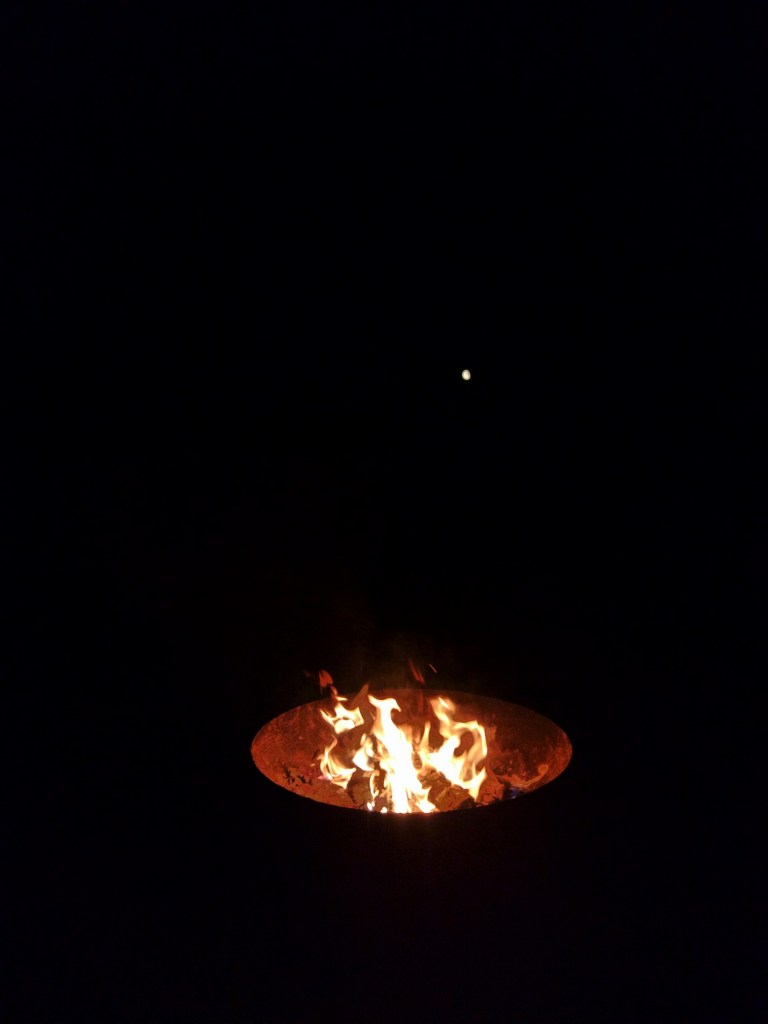 Tonight I find myself in front of a fire, sitting not alone but in my own company, listening to the crackle of the fire and the coyotes and the upset donkey, the dogs claiming their territory and the hum of life, and I am grateful. I am grateful for this amazing moon and stars, for family – both “legit” and adopted that I have been priveledged to spend time with today, for my tools that allow me to push myself in strength, compassion and love, and for my life… as it is now and as it will be.